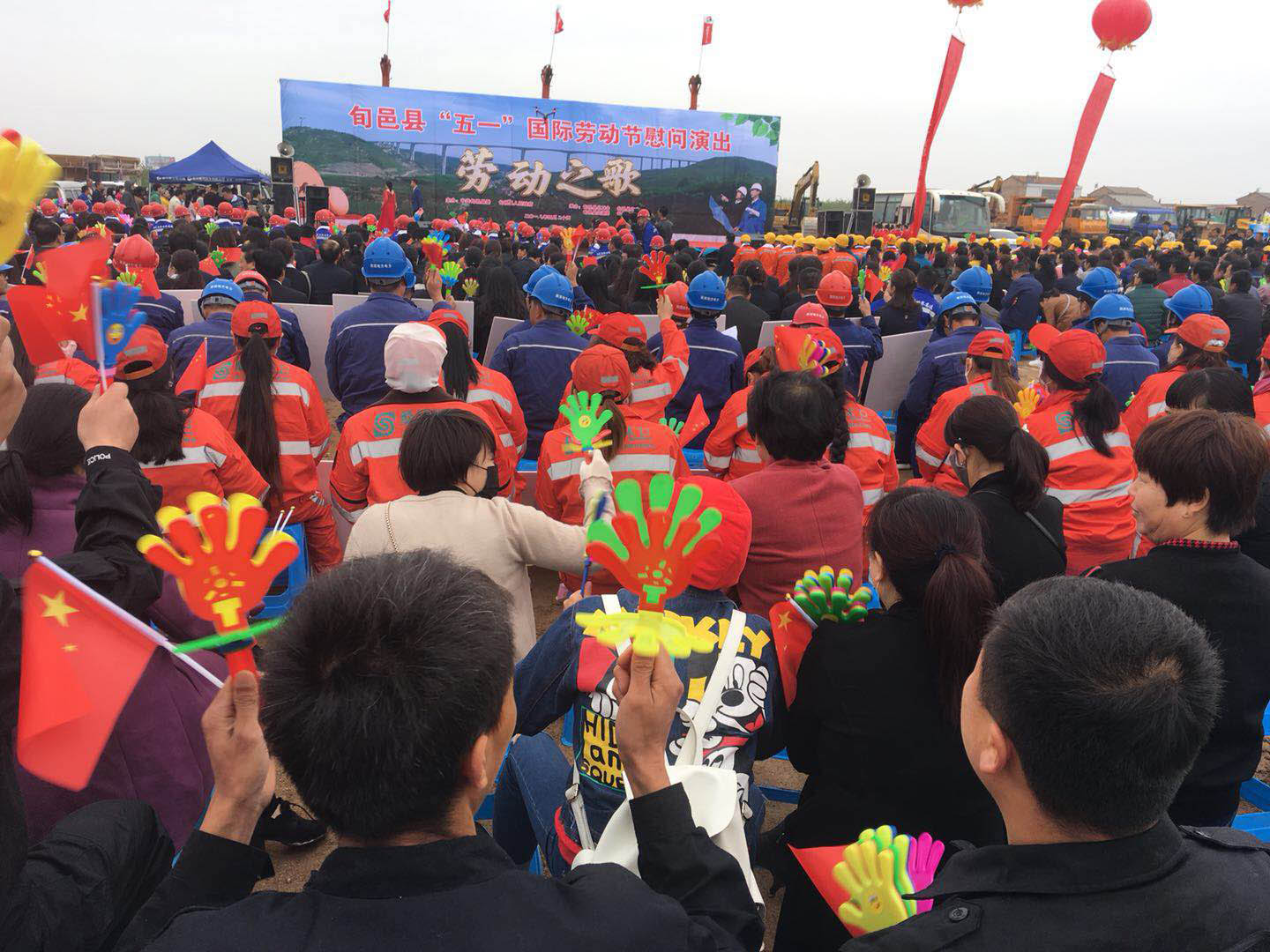 為了慶祝即將到來的“五一”國際勞動節(jié),在全縣大力弘揚工人階級偉大品格和勞模精神,增強(qiáng)主人翁責(zé)任心和自豪感,進(jìn)一步激發(fā)職工群眾的干事創(chuàng)業(yè)熱情,4月24日,由中共旬邑縣委、旬邑縣人民政府主辦,旬邑縣總工會、旬邑縣文廣局、旬邑縣交通局、旬邑縣文旅局承辦的“勞動之歌”慶祝“五一”國際勞動節(jié)慰問演出活動在咸旬高速赤道互通式立交建設(shè)工地成功舉辦。